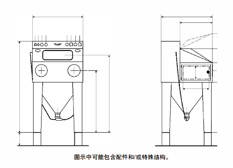 - 鉸鏈門,應用耐磨玻璃的觀察窗。置于可迅速更換的支架上 - 門限位開關(guān)