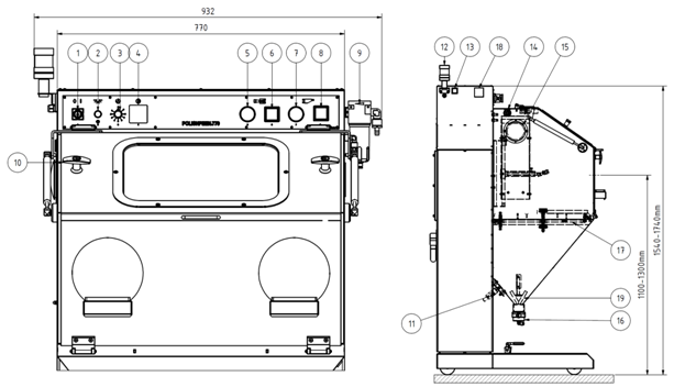 • 袖套和手套可以更換,手動(dòng)或氣動(dòng)調(diào)整機(jī)器高度